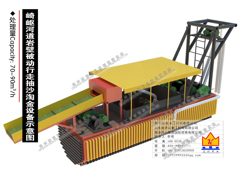 每小时70-90立方处理量崎岖河道岩壁被动行走抽沙淘金设备